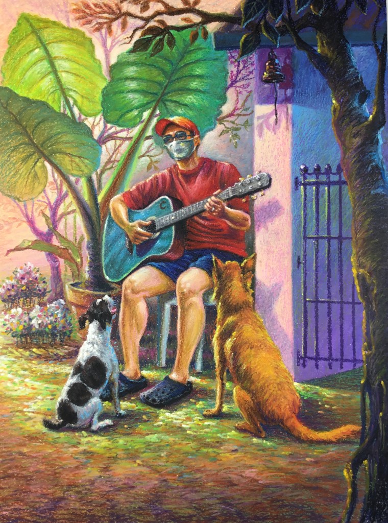 With the ongoing pandemic, the world has become less busy and smaller, confined within the 4 walls of our houses. Pretending to be blind, I played my guitar and started to sing. The line, “I once was lost but now I’m found, was blind but now I see” from the song “Amazing Grace” brought tears to my eyes. Looking around, I saw the beauty around me that I had often taken for granted. The chirping of birds, the beauty of the flowers…and the unconditional love and loyalty of my 2 dogs listening to my song. Amazing grace indeed!