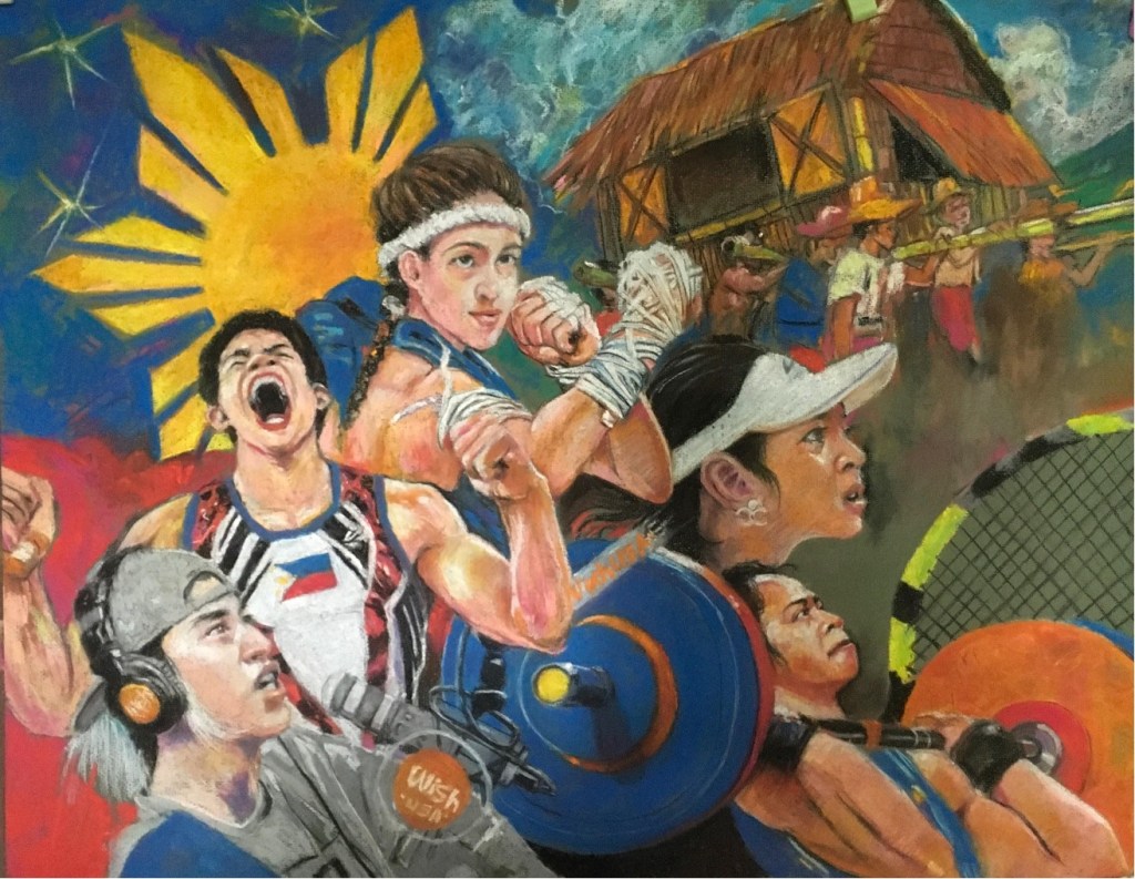 My pastel painting Filipino PANALO ! is a collage of very astounding individuals who won and conquered in their respective arenas amidst all the trials going on in their own private lives and the world. We prevail, focus and move on and target the prize. Together, We are resilient. Together we win!