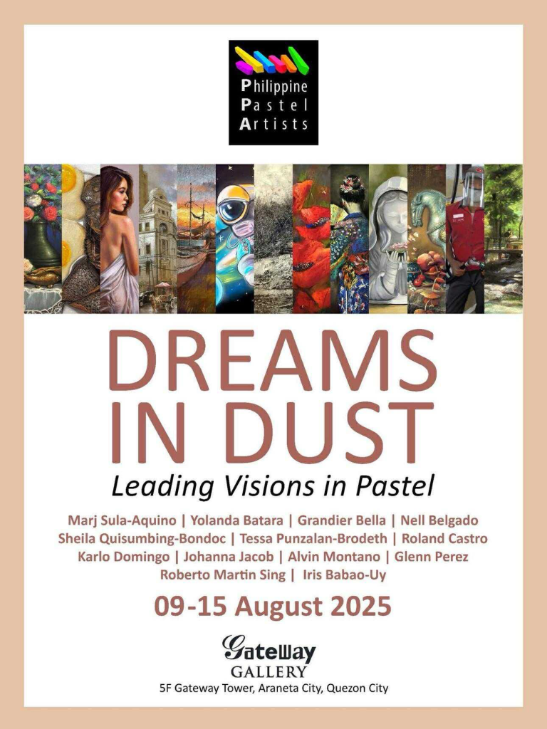 Isang malaking karangalan ang makaharap kayo ngayong hapon para sa pagbubukas ng Dreams in Dust: Leading Visions in Pastel exhibit. Hindi lamang ito isang eksibit na patungkol sa sining, ito ay isang paglalakbay sa alaala, damdamin, at imahinasyon, gamit ang isang medium na madalas hindi nabibigyan ng sapat na pansin: pastel. The title itself, “Dreams in Dust,” is both poetic and poignant. It gestures toward the ephemeral quality of pastel. Yet within this fragility lies strength: the artists’ visions are bold, their techniques refined, their narratives deeply rooted in Filipino experience and sensibility.