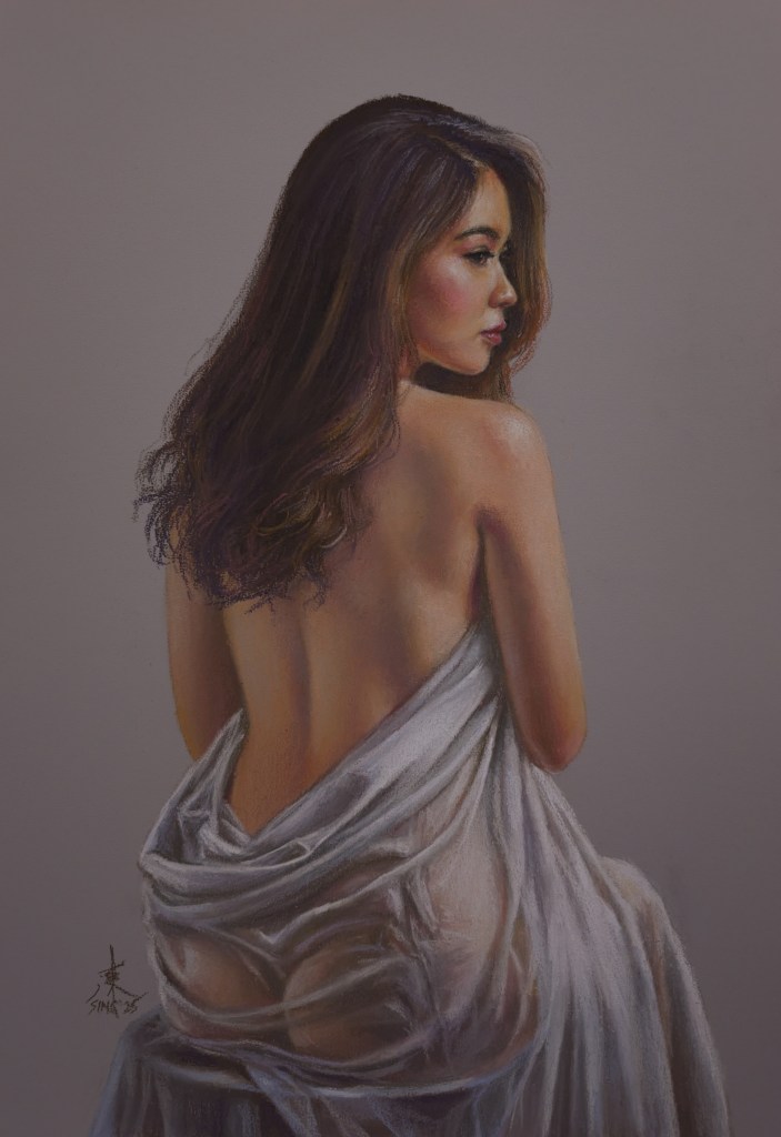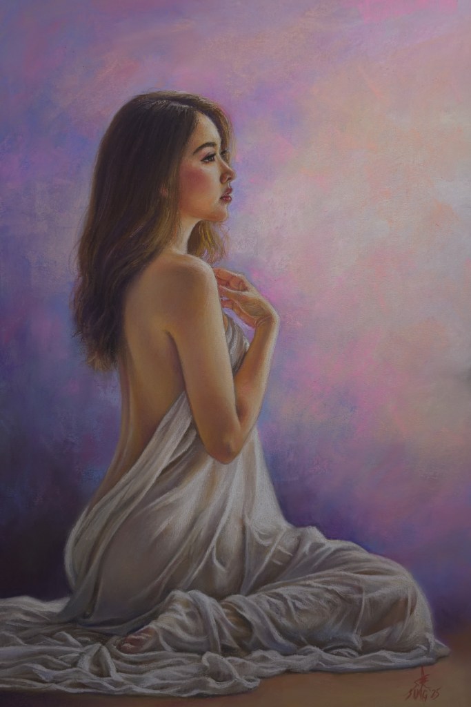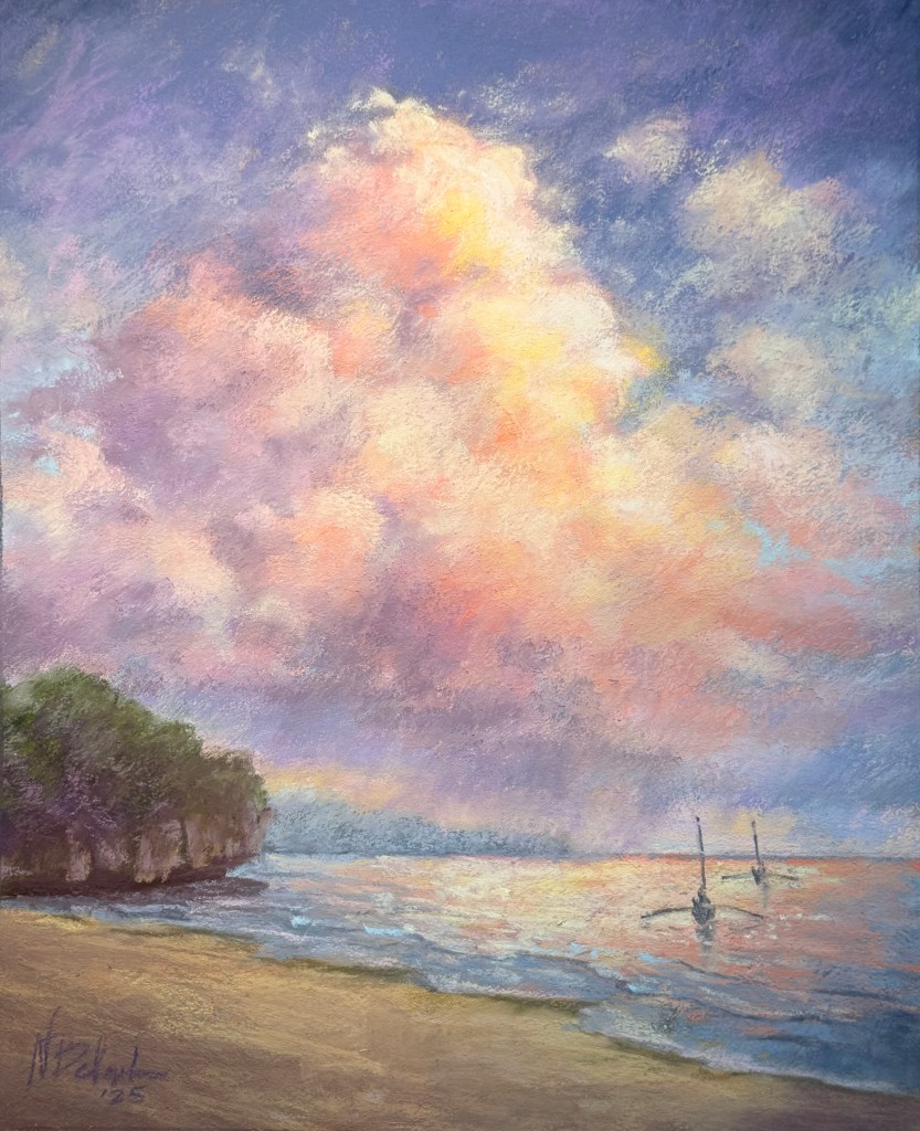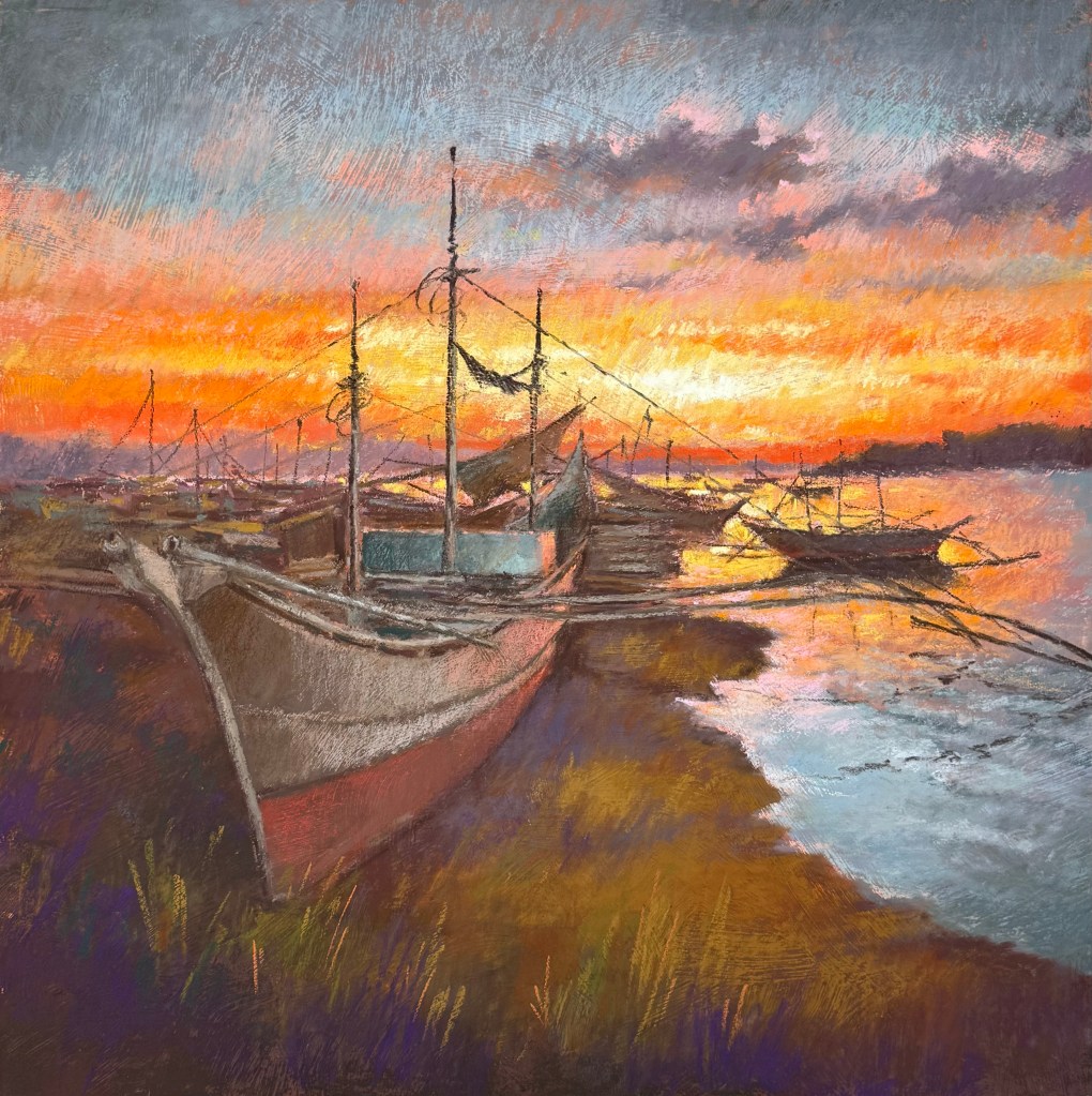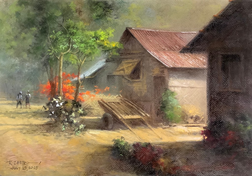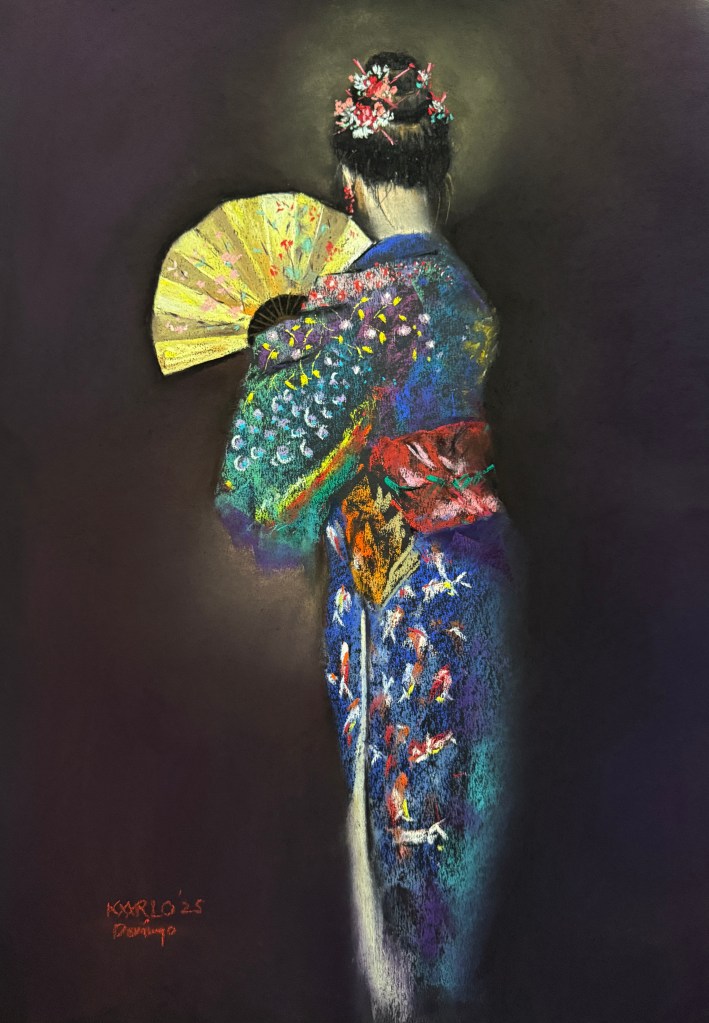 Pastel is a medium of softness and immediacy. Unlike oil or acrylic, or even watercolor, pastel pigments rest directly on the surface, creating a velvety texture that feels both tactile and transient. Sa pastel, ang kulay ay hindi nakatago sa likod ng makapal na pintura— ito ay nakalantad, humihinga, at dumadampi sa papel na parang haplos ng alaala. It invites a quiet intimacy, a sense of nostalgia, and emotional depth that few other mediums can match.