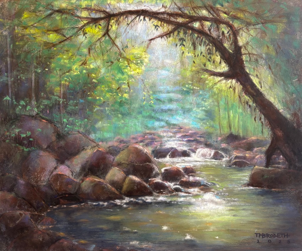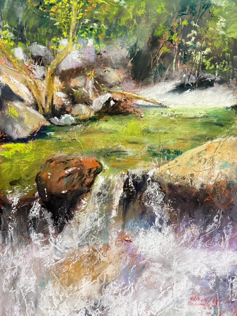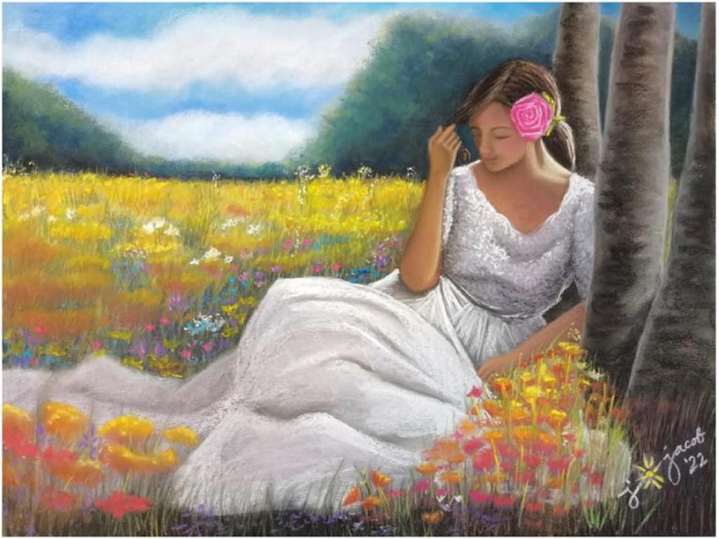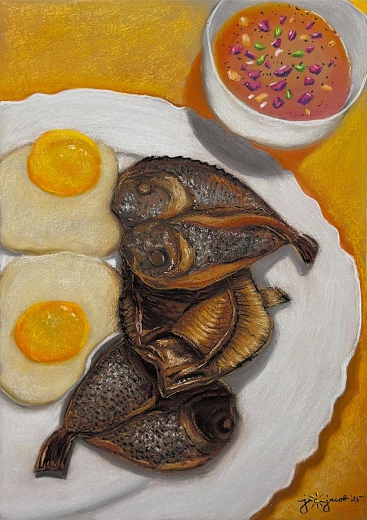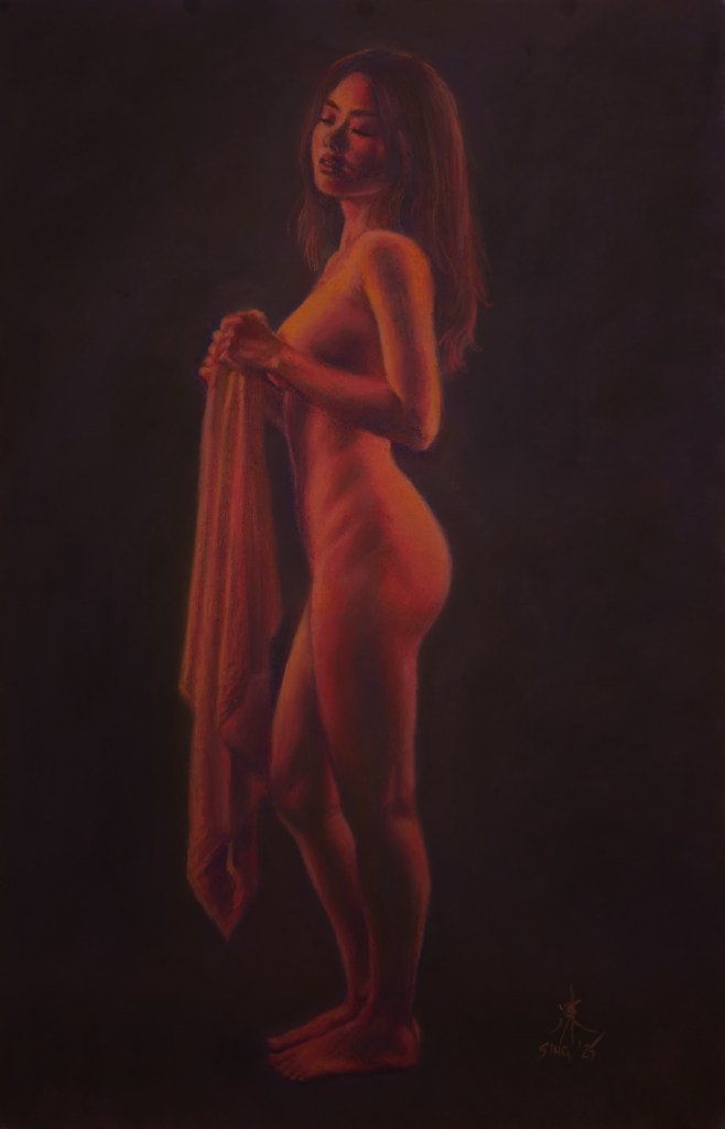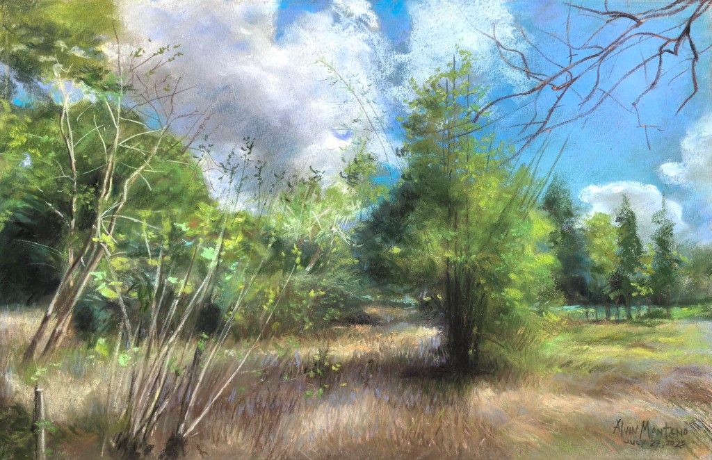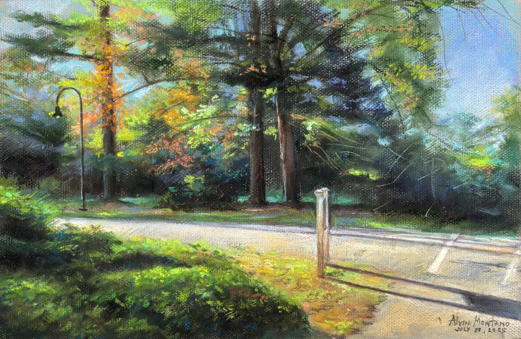Pastel is a medium of softness and immediacy. Unlike oil or acrylic, or even watercolor, pastel pigments rest directly on the surface, creating a velvety texture that feels both tactile and transient. Sa pastel, ang kulay ay hindi nakatago sa likod ng makapal na pintura— ito ay nakalantad, humihinga, at dumadampi sa papel na parang haplos ng alaala. It invites a quiet intimacy, a sense of nostalgia, and emotional depth that few other mediums can match.