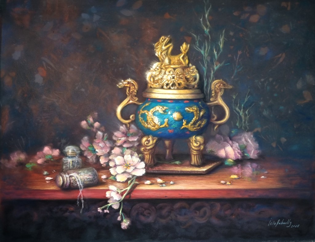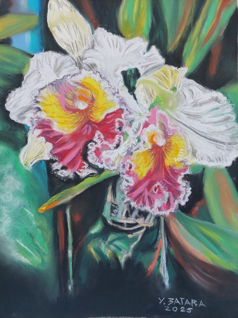 Ngayong hapon, ipinagmamalaki nating ipakita ang mga obra ng labintatlong natatanging alagad ng sining ng Philippine Pastel Artists, a collective renowned for elevating pastel from medium to movement: Marj Sula-Aquino, Yolanda Batara, Nell Belgado, Sheila Quisumbing-Bondoc, Tessa Punzalan-Brodeth, Roland Castro, Karlo Domingo, Johanna Jacob, Alvin Montano, Glenn Perez, Roberto Martin Sing, Iris Babao-Uy, and yours truly, Grandier Bella. The works range from intimate still lifes to botanical elegance, from urban vignettes to spiritual quietude. Sa bawat obra, sa bawat kulay, naroon ang puso ng pagka-Filipino… mapagmasid, malikhain, at marangal.