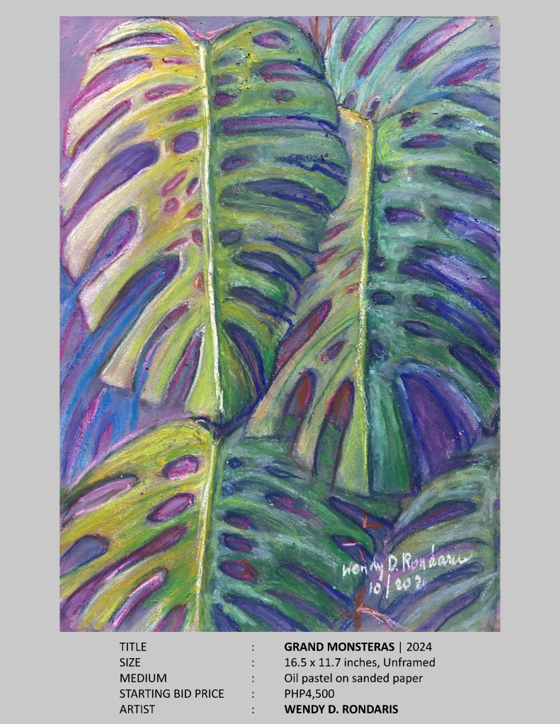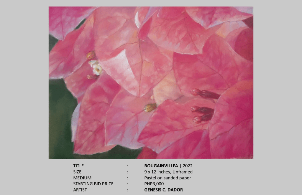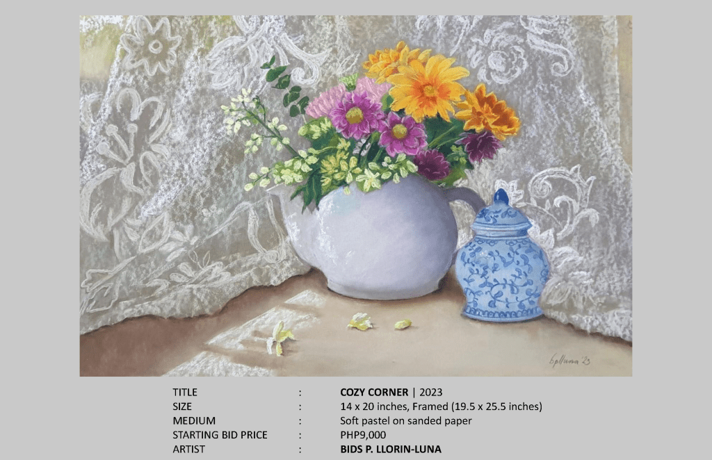 For the chance to obtain artworks at prices significantly lower than the artist’s gallery price, your patronage will help us continue the commitment to unify our pastel community and bring out the best in Filipino pastel artists.